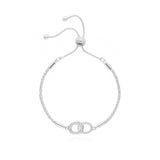 This Bracelet features an adjustable fit, silver-plating and chic interlocking embellished hoops for extra shimmer and sparkle!