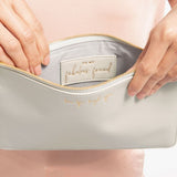 Some secrets are worth sharing… like our gorgeous Secret Message Pouches! This shimmering pale grey pouch has the golden sentiment ‘love life, laugh often’ on the front and an inspiring hidden message on the inside that says ‘to my fabulous friend’. Sentimental and stylish, it’s the perfect gift, sure to brighten every day! This luxe design is finished in a soft material and has premium golden hardware, allowing you to detach the wrist strap for a versatile style.