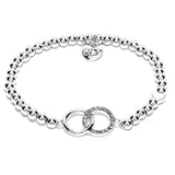Beautiful Pure Silver Plated Bracelet with Linked Crystal Encrusted Circle Charm, on 5mm beaded stretch bracelet. Circles measures 2cm x 1cm This bracelet comes presented in a luxury gift box, with a #Especially For You, 'With Love' card. All jewellery is finished to the highest standard & E-coated to prevent any tarnishing.