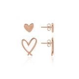 This set of two rose gold-plated earrings features mini rose gold heart studs and outline shaped hand-drawn hearts.