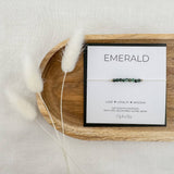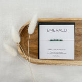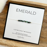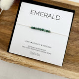 Emerald - PASSION - REJUVENATING - CALMING May Birthstone This stunning Emerald bracelet comes on delicate silk cord accented with Sterling Silver or 14K gold filled beads. Emerald beads are approximately 3mm. The silk bracelet measures approximately 24cm and it comes with a sliding beads so that the bracelet can be removed as desired. Presented on a beautiful keepsake card printed on high quality matte white card (80mm x 80 mm) and it comes with either a black or white mini envelope. Packaged in a cellophane bag. All information about the metaphysical properties of the crystals is for reference only. It is a combination of research on how the gemstones have been used by different cultures today and throughout history. We do not recommend using crystals as a substitute for conventional medical or psychological treatment and do not claim they cure or heal medical conditions. Please always listen to the advice of your medical professional.