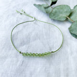 Ophelia Jewellery - Peridot Silk Bracelet: Gold filled beads